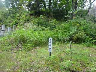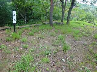 こうして尾根上に登ったところが広くなっていた。この南側には墓地が造成されていて、お参りに来ている人がいた。その手前の平場に「軍勢駐屯場(陣屋)」と言う案内板が立てられていた。なるほど、この辺りが城内ではもっとも面積のある平場であるようだ。