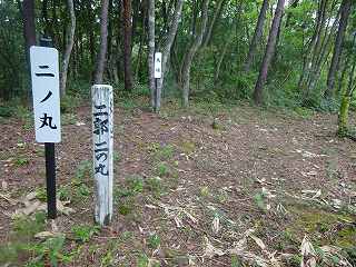 さて、再び登ってきた方向に戻って、その北側の一段高いところに登って行くと、そこが二ノ丸である。ここにもやたらと二ノ丸を主張するいくつかの案内が立てられていた。