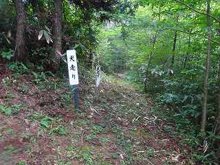 小屋の背後から山稜に上がる道が付けられている。以後は城内の各所に案内板が立てられており、地元の人の熱意が感じられる城址となっている。保存会の方が頑張ってくれているのであろう。