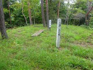 その南側が三ノ丸である。上がってみると、そこに三ノ丸を示す標柱がいくつも立てられている。「3郭 三ノ丸」と書かれた標柱と「三ノ丸」とだけ書かれた標柱とが建てられており、やたらと郭名を主張するにぎやかな標柱である。