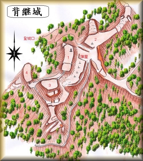 これらにある城名は「末次城」であり、現地では末次城と呼ばれているらしい。しかし、末次城といった名前の城は他所にもあり、背継城と言う名称の方が唯一無二である。といったこともあって、ここでは背継城として紹介しておくこととする。
