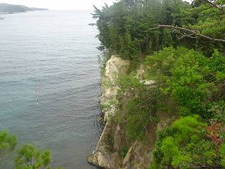 さらに先端の先には、離島と呼ばれる小さな島があり、その断崖絶壁が見えている。この島までが城域であったのかどうかは分からない。吊り橋などを懸ければ、島と接続することも可能だったかもしれない。