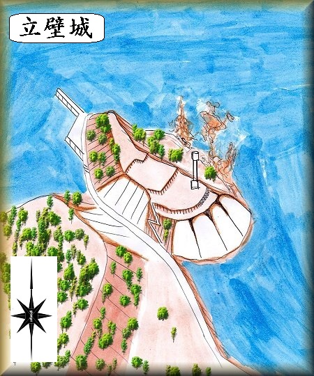 立壁城は、灯台の建つ城ヶ岬の先端部に築かれており、googlemapにも掲載されている。
