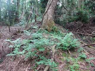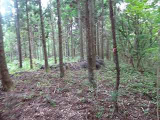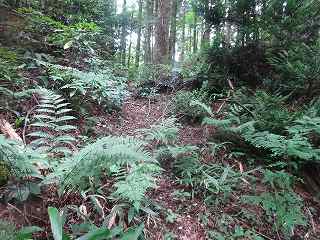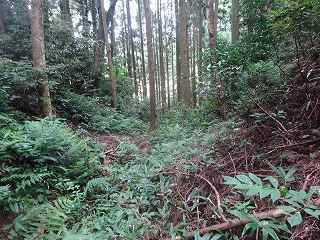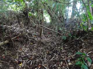 再び、1郭を降りて、今度は分岐点からまっすぐに尾根を登って行く。その途中、尾根の外側からガサガサという音が聞こえてきた。そこでこちらも声を出して、ここに人間がいることを知らせる。しばらくガサガサとして動いているようだったが、やがて音は聞こえなくなった。何かの獣が動いていたことは間違いない。