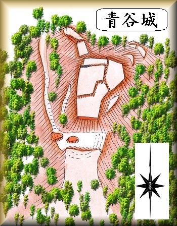 青谷城は徳田の集落の南側にそびえている比高100mほどの山稜に築かれていて、googlemapにも掲載されている。徳田・館開集落から倉垣・安津見方向へとつながる街道沿いにある山城である。