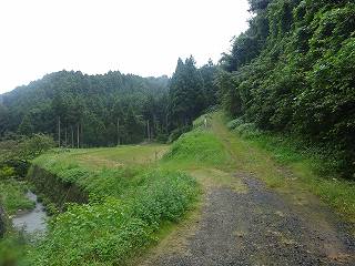 道はそのまま谷戸部内に入り込んで行き、正面に土手山が見えている。しかし、それは城址ではなく、実際の城址は左手に見える山の上である。
