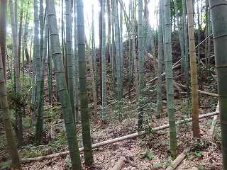 | 1郭南側の虎口。 | 1郭内部。ここだけはあまりヤブがない。 |