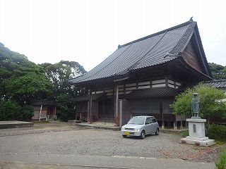 | 浄真寺の本堂。 | 南側の墓地脇にある土塁。 |