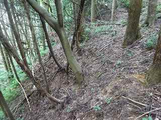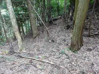 | 最初の堀切を側面部下から見たところ。 | |