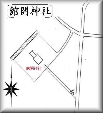 館開地区の集落内にある館開神社には堀跡のようなものがあり、かつて城館跡と考えられていたことがあったという。