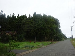 | 南側から遠望する寺家物見砦。 | 図面だとこの民家の脇から入って行ける道があるはずなのだが、実際には行き止まりになっている。 |