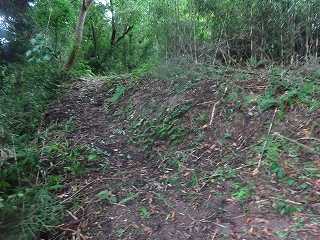 3郭から主郭にいきなり来てしまったので、2郭を飛ばしてしまったことになるのだが、主郭の西側下には広い平場があり、そこが2郭であったようである。ただし、ヤブ化しているため、立ち入りは容易ではない。