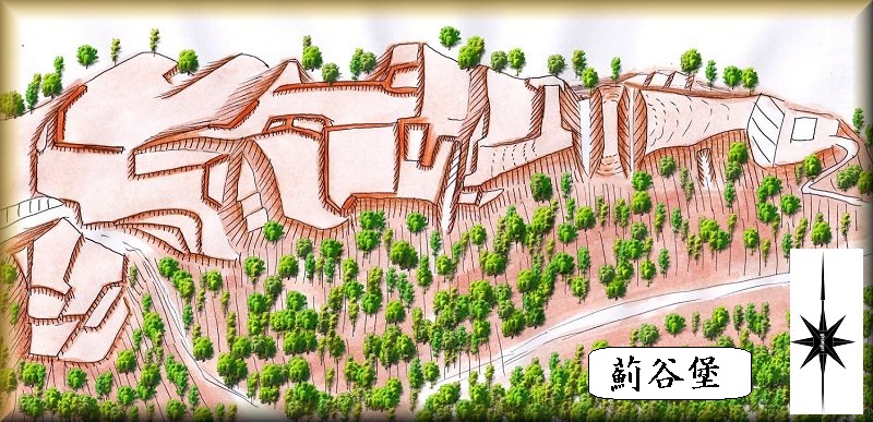 そんなわけで遺構のあるところまでたどり着けなかった。そこで上記の書の図面を基にした鳥瞰図を描いてみることにした。