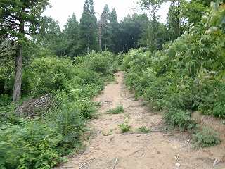 城までは林道が付けられているため、アクセスは容易である・・・・と思っていたのだが、現地に訪れてみると山稜の一部は崩壊しており、当の林道はすっかり埋まってしまっていた。