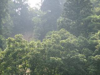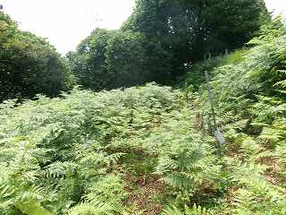 水道施設の背後の山稜上が城址ということになる。ところが、ここから先はヤブがひどくて、夏場での進入は容易ではない。それどころか、雨が降り出してきてしまったので、とてもヤブに入って行けるような状況ではなくなってしまったのであった。