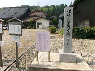 下の道路沿いには、広勝寺の前に、順徳上皇行在所の石碑と案内板とが建てられていた。