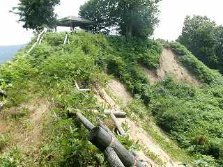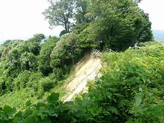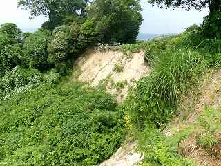 1郭に上がってみると、西側の土手がかなり崩落してしまっているのが見える。