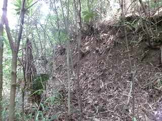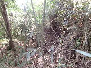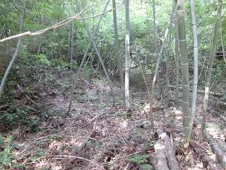 北側の尾根続きの部分からだと、ほとんど平行移動で200mほど進んで行けば城内に到達できそうである。