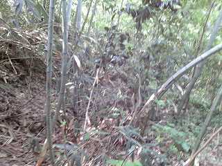 上に行く道が見えたので進んで行ったのだが、それはその先の墓地までのものであり、そこから先にはヤブしかなかった。