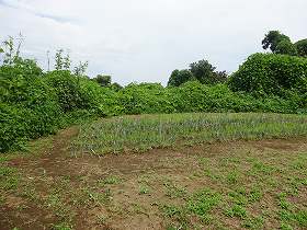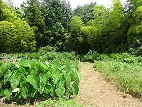 | 城内。マキノ中津川寮の広い駐車場となっている。 | その先端部は畑となっている。 |