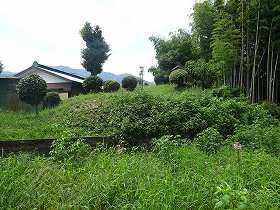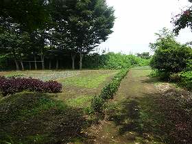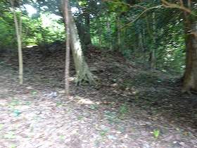 | 1の平場。けっこう広い空間となっている。 | 墓地の背後の城塁状の土手。 |