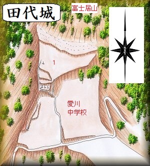 田代城は愛川中学校やその背後の山稜を利用して築かれていた。細野城とは、中津川を挟んで向かい合うような位置にある。