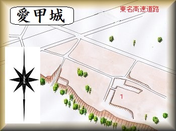 愛甲城は、下糟屋2203番地の辺りにある神明神社の北側一帯に築かれていた。北側の玉川に臨む、比高10mほどの台地上である。
