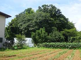 この神社の北側が広い畑になっていて、その正面突き当りに那須与一を祭ったお堂が建てられている。よく見ると、その手前部分が一段低くなっており、堀の跡であったと思われる。堀跡は西側で直角に折れ、そのまま南側に続いていく。