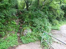 | 横堀の先には切通しの通路が続く。 | 東側下の虎口。 |