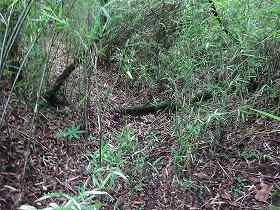 | 1郭南端部の堀切。崩れたのか、かなり緩やかである。 | |