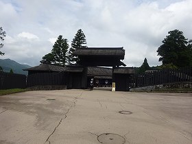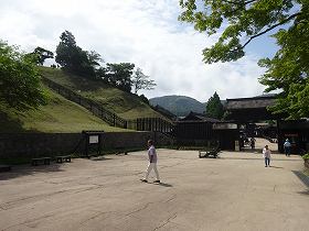 | 箱根関所の入口。京口御門。 | 関所内部。奥が江戸口御門。 |