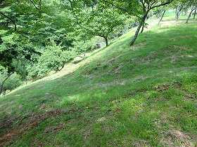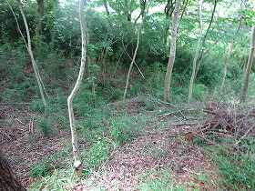| 南側下の横堀。 | 横堀の上のテラス状の帯曲輪。 |
