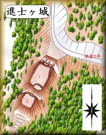 城址までは車道が通っているので、送水管のある辺りにナビをインプットしておけば、山中を延々と走って、城内に到達することができる。城址直前の道路は、比較的幅に余裕があるので、その辺に車を停めておいても問題はないと思う。