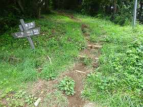 そういうわけで車を停められたので、後はこの地点の登り口からハイキングコースに入っていく。ここは人気のあるハイキングコースで人がにぎわっているという話であったが、真夏だったせいか、ハイカーには一人も遭遇することはなかった。