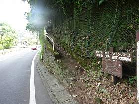 さて、屏風山登山ハイキングコースの入り口は、ちょうど箱根関所の対面のこの辺りで、案内表示が出ている。これを進んでいくと、最初は緩やかな歩きやすい道である。ただし、そんなに訪れる人もいないのか、けっこう草が茂っている箇所もある。