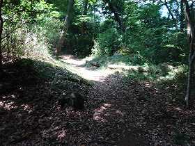 | その土塁の下の切り通し。こちらが本来の虎口か。 | 2郭手前の堀切。 |