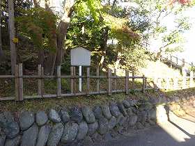天徳寺の背後は広い墓地になっており、この辺りが城の中心部であったと思われる。墓地の北端には土塁が残されているのだが、けっこう幅が広くなっており、櫓台であったと見たくなるようなものがある。あるいは城の北東角に当たるので、鬼門除けの神社が立てられていた場所であるとするのが現実的な解釈なのかもしれない。