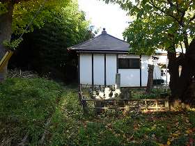| 南側の民家の前の土塁のところに「山下長者屋敷」の案内板が設置されている。 | 北東側にある東光寺。 |