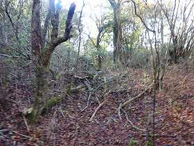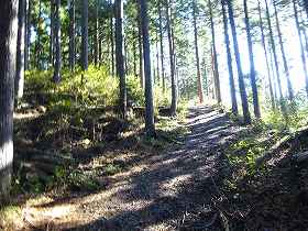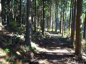 21世紀の森方面へのハイキングコースに入り歩いていくのだが、このハイキングコースは、あまり城塞群を意識しておらず、古楢尾砦と阿弥陀尾砦は、ハイキングコース沿いにはない。つまりハイキングコースをそのまま歩いていくと、通り過ぎてしまうので注意しなければならない。