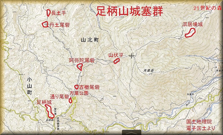 足柄峠から各方向に向けて、尾根道を抑える城塞群が築かれている。いずれも北条氏によるもので、足柄峠を中心として、西方からの脅威(この時代は武田氏であろうか)に備えて築かれたものである。これらをざっと歩いてみた。