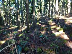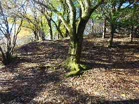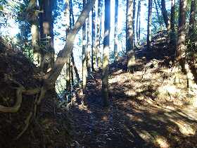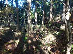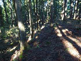 ただし、ハイキングコースとの間は鞍部になっており、天然の堀切のようでもある。それに面する部分は切岸状になっているので、この付近はなんとなく砦の雰囲気を残していると言ってもいいかもしれない。