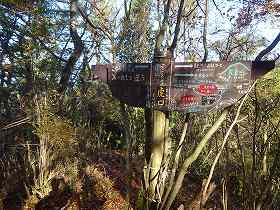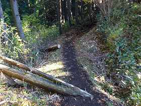 そうやって尾根道を降りていくと、やっとのことで、本来のハイキングコースと合流した。ハイキングコースは山の斜面のかなり下方を通っていたのである。もっとも側面部に付けられているおかげで、万葉公園からこのハイキングコースを進んでいけば、たいしたアップダウンをせずに山伏平へと行けるようになっているので、ハイキングだけが目的の人にはありがたいルートとなっている。