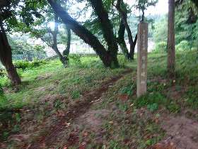 | 東側から見た沼田城。 | 城址への坂道を登ったところに城址標柱が立てられていた。 |