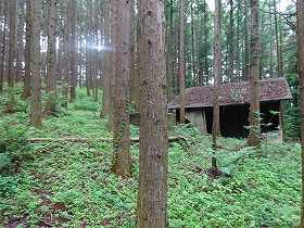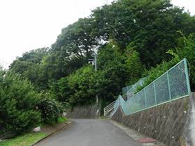 | 矢倉沢城の入口。手すりのあるところが目印である。右手の道を上がると、さらに上に向かう踏み跡があるので、そこから登る。ここからの比高は20mほど。 | 1郭内部。 |