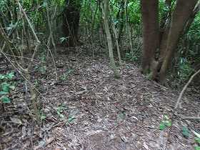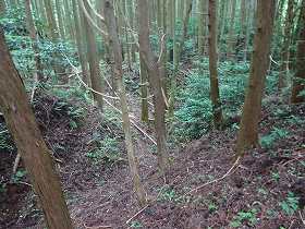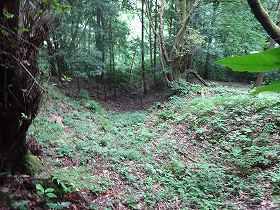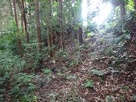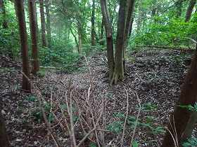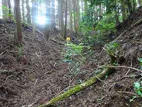 | 1郭東側の竪堀1本目。 | 同じく竪堀2本目。竪堀だけが妙に立派である。 |