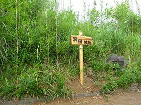 城内は一軒のお宅と畑になっている。城内へは切り通しの通路を通って進入していくが、坂を上り切ったところの正面に「沼田城址」と書かれた案内が立てられていた。