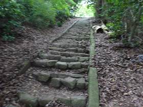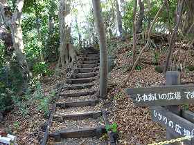 高麗山の山頂には神社が祭られており、そのための参道が山麓から付けられているようである。しかし、このような山を下から登っていくのはいかにもきつい。
