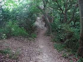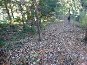 渡ったところは郭ではなく尾根部分であった。この尾根をさらに進んでいくjと、尾根の鞍部Aがある。この部分、尾根の両側が削られており、現在は緩やかな高低差になっているが、もともとは堀切が存在していた場所ではなかったかと思う。