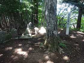 1郭はあまり広くなく、櫓台程度の広さである。ここにいくつかの墓標のようなものと、手書きの城址標柱が立てられていた。1郭の周囲は切岸加工されているらしく、一段下に帯曲輪やテラス状の小郭が生じている。