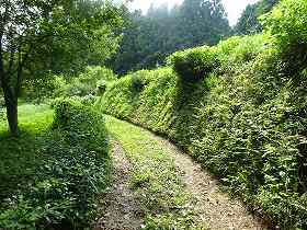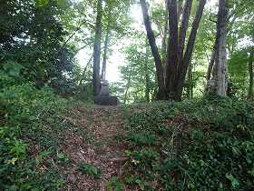 | 登城道途中にある郭との間を区画する尾根利用の土塁。 | |